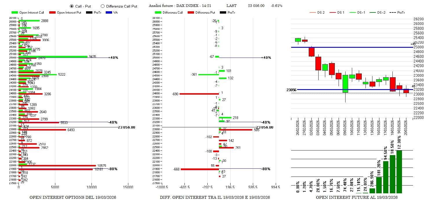 Chiusura di put a 24000 e nuove aperture a 23000, Lato call poco trattato