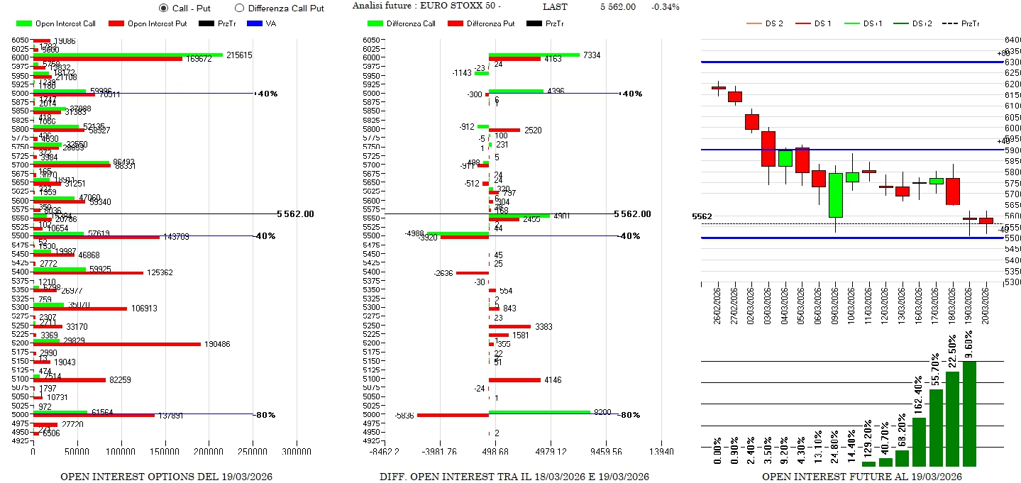 Chiusure di put a 5400 e 5500 e rollover esterno. Call in aumento a 5900 e put Itm a 5800. Ricoperture sintetiche a 5550
