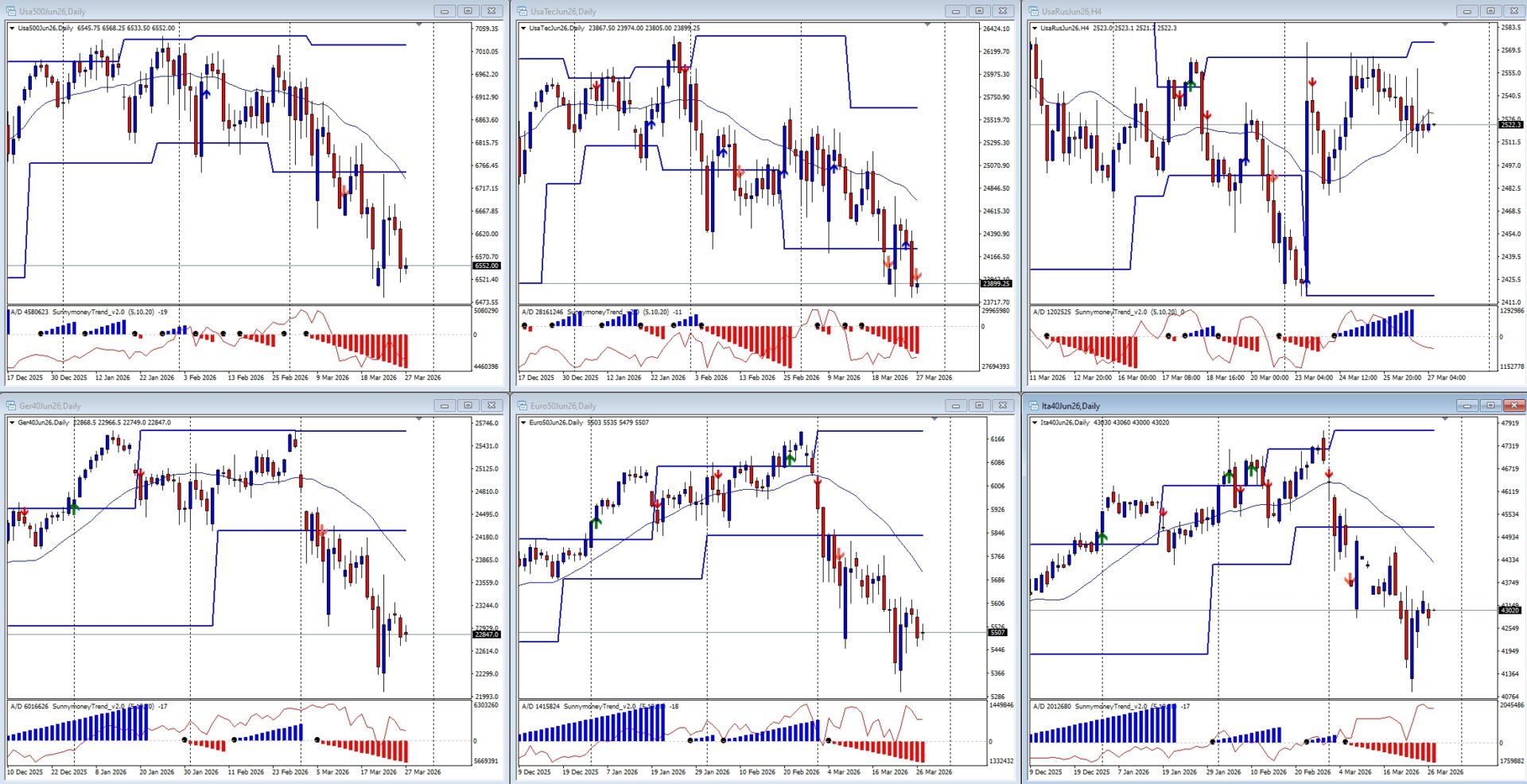 La giornata di giovedì è stata caratterizzata da un’estrema fragilità tecnica che ha visto i principali listini affondare sotto il peso dell’incertezza diplomatica, rompendo i livelli critici di gamma negatività e scivolando fino a testare la prima deviazione standard giornaliera. A Wall Street i principali listini hanno avuto una discreta contrazione, recuperando però gran parte del terreno perso grazie a un violento acquisto sui minimi innescato nel finale di seduta. In Europa, la chiusura è stata ugualmente pesante a causa del timing delle comunicazioni. Il driver fondamentale è stato l’ennesimo proclama di Donald Trump, che ha annunciato una proroga della tregua con l’Iran per ulteriori giorni, disinnescando istantaneamente la spirale di vendite algoritmiche che stava portando i mercati verso una correzione profonda proprio sui livelli di supporto più critici.