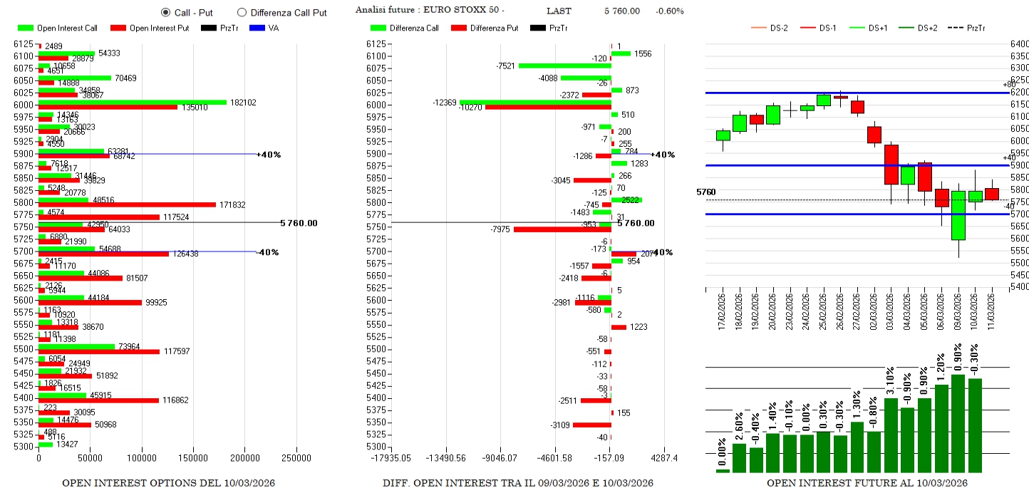 Grandi operazioni di chiusura di posizioni, sia di call che di put, compresi anche aree di ricopertura sintetica a strike 6000. Future sempre in pressione.