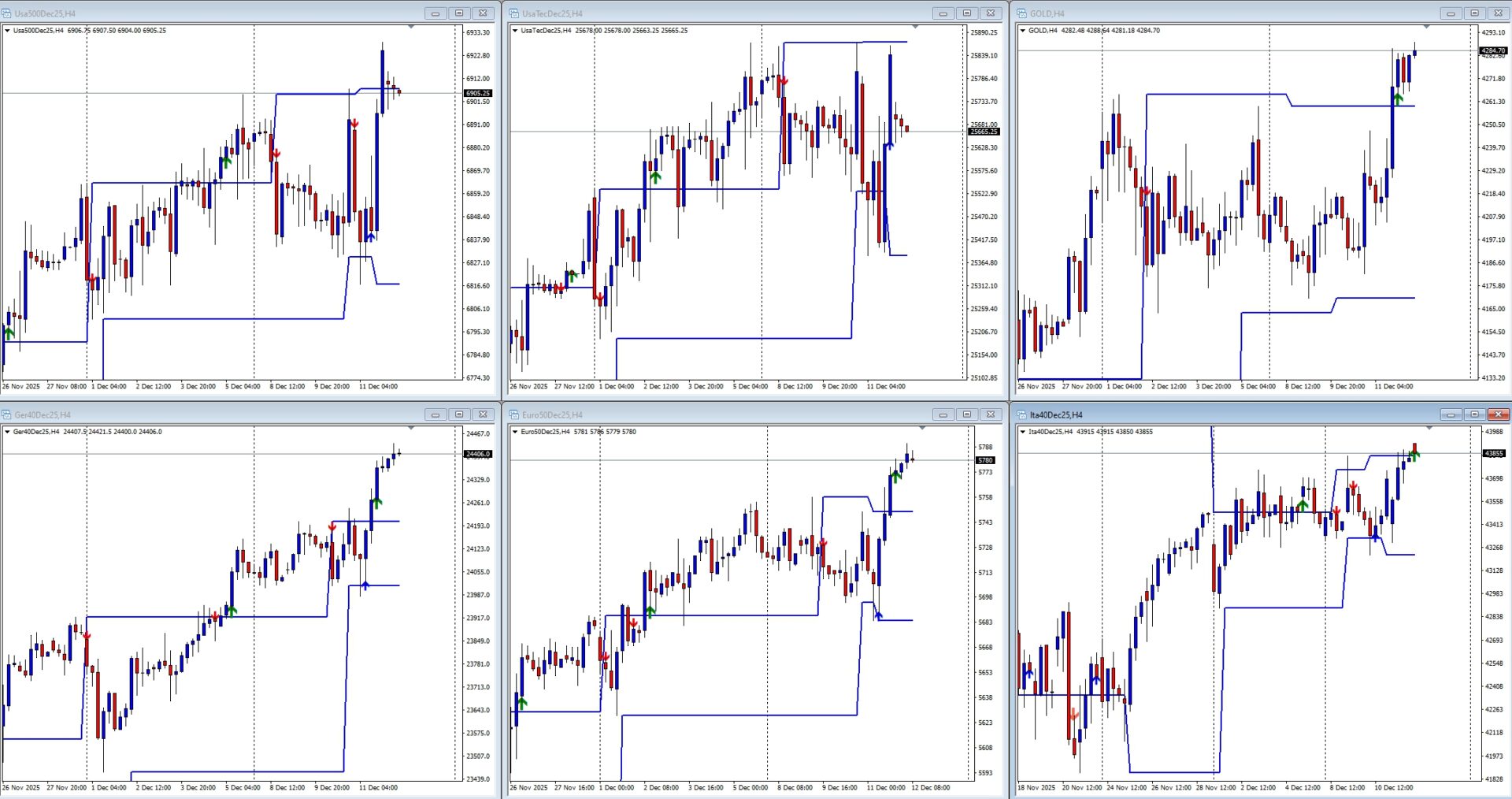 Mercati fortissimi che dopo un lungo periodo di trading range contraddistinto da false rotture e ritorni alla media hanno ripreso la solita direzione rialzista. Maggior forza su Dax, Stoxx e Gold e con minor impeto sugli altri sottostanti. Il trading system di breve periodo è comunque posizionato long.