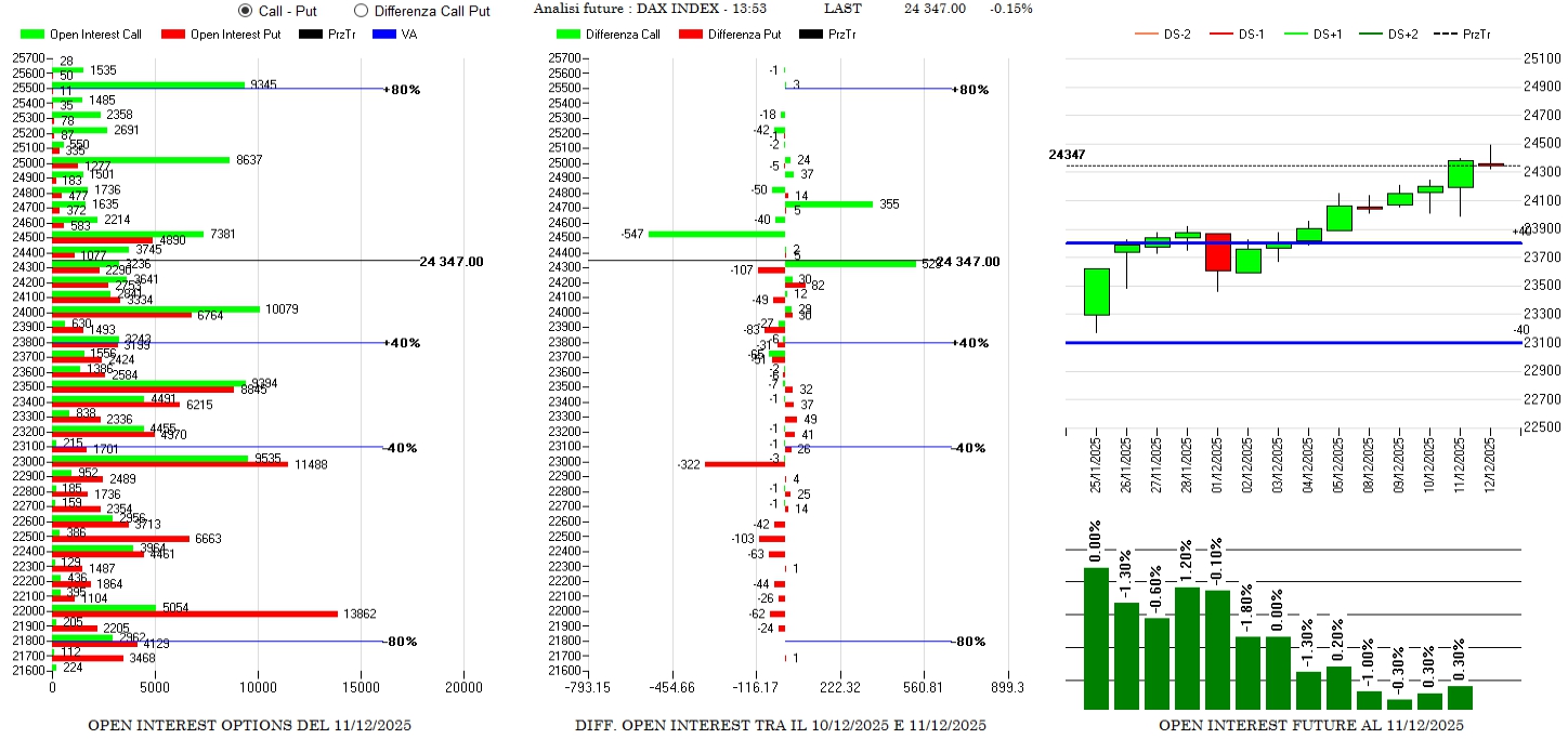 Sui massimi vengono alleggerite put sotto al prezzo e riposizionato rischio sul lato call con chiusure a 24500 e nuove aperture a 24300 e 24700.