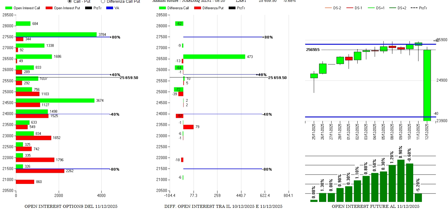 Forte calo dei future e riposizionamento di put a 23500 e di call a 26500.