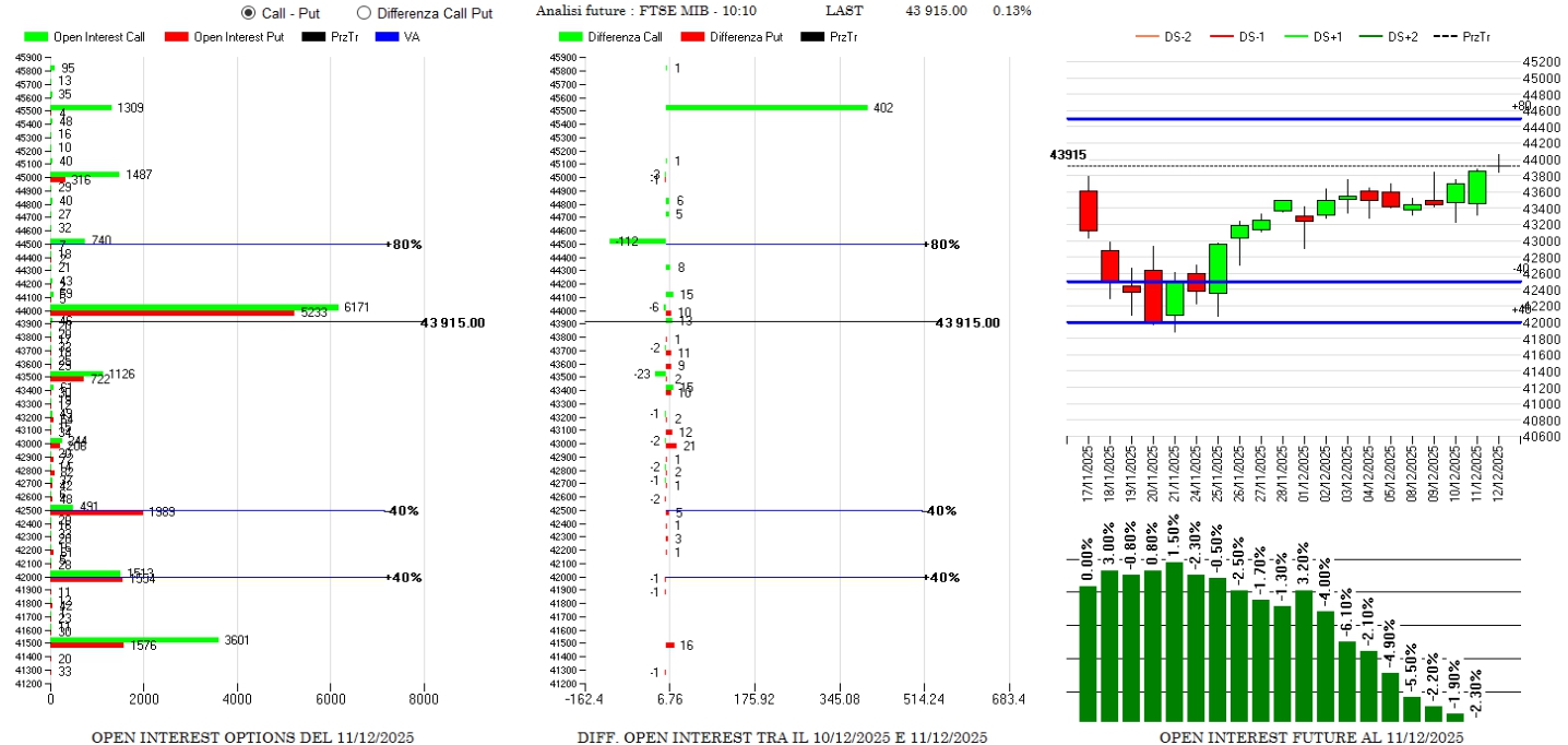 Chiusura di call su Va+80 a 44500 e riposizionamenti di oltre 400 contratti a strike 45500. Disinteresse sul resto della chain