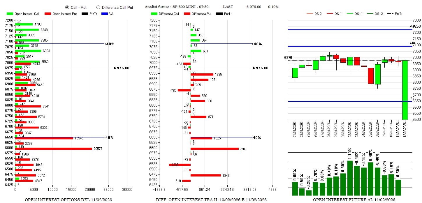 Anche nella giornata di ieri a farla da padrone sono stati i continui e persistenti ingressi di put da strike 6950 a 6475. Le prime call, ma in misura assolutamente minore, le vediamo entrare da strike 7050 fino a 7150. I future, come era lecito attendersi dopo una giornata senza direzionalità e nuovamente in mano ai day trader, ancora in diminuzione