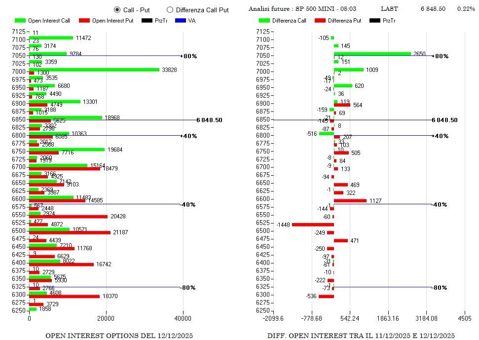 Forti riposizionamenti di call sopra al prezzo assimilabili ad una configurazione in ladder. Chiusure di call a strike 6800 e riposizionamenti di put da strike 6900 a 6600.