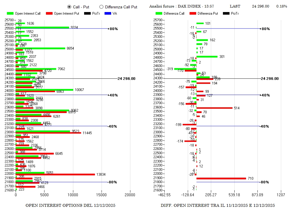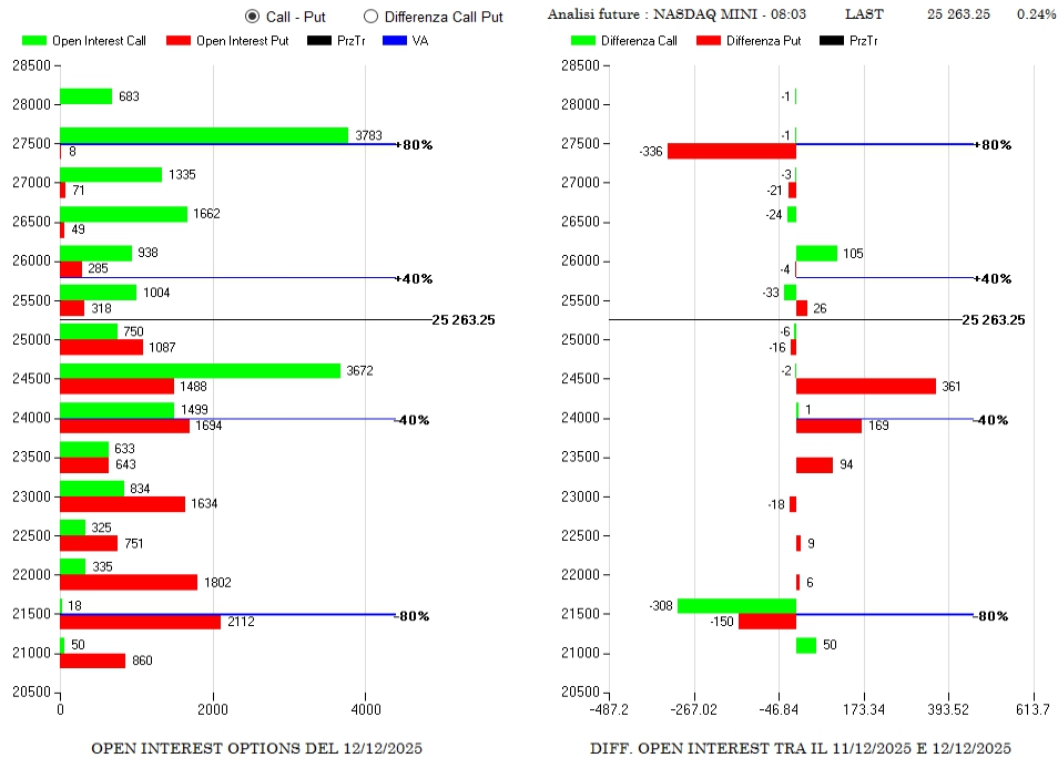 Chiusura di put Itm e riposizionamenti di contratti a 24500 e 24000. Call in aumento a strike 26000.