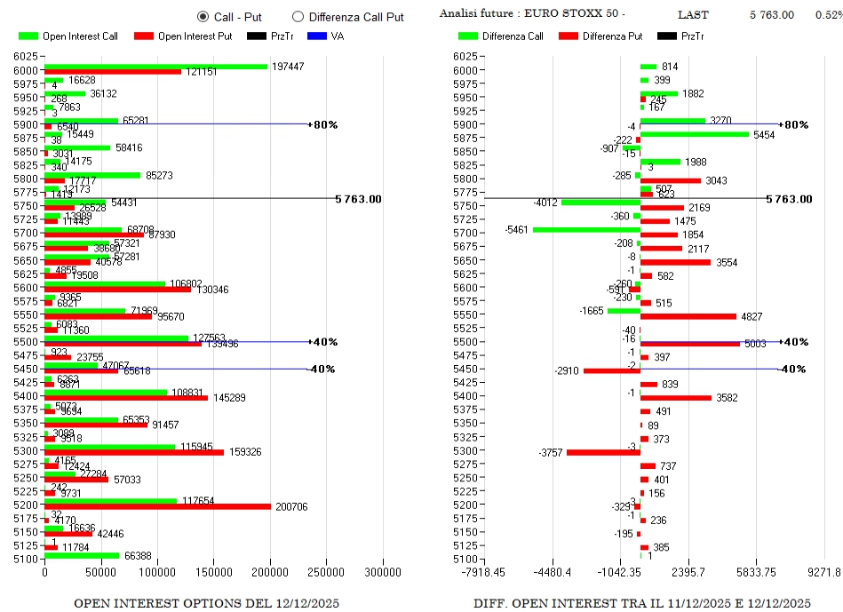 Sempre tante put in ingresso sotto al prezzo tra 5800 e 5400 e forti chiusure di call da 5500 a 5750. Nuovi riposizionamenti di call a 5900.
