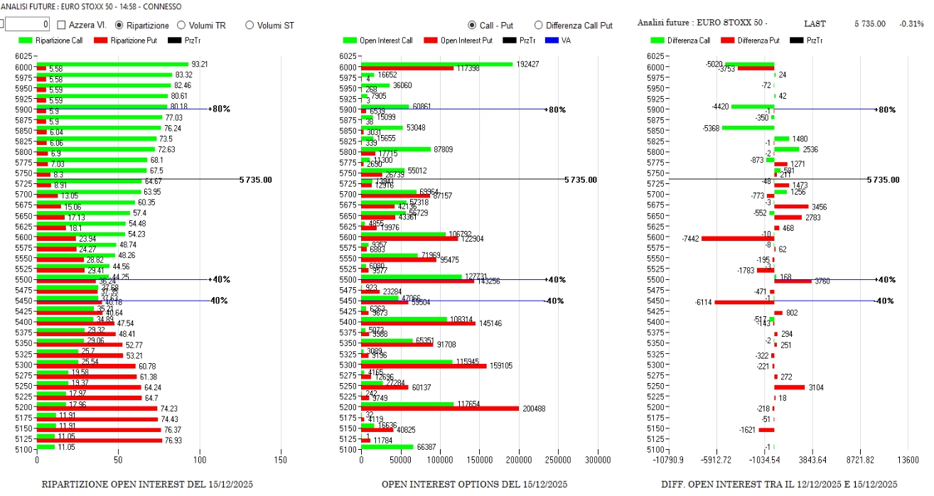 Prezzo ben sopra Va+40 e operatori che cercano di imbrigliarlo tra 5775 e 5725 con rollover interni di put e di call