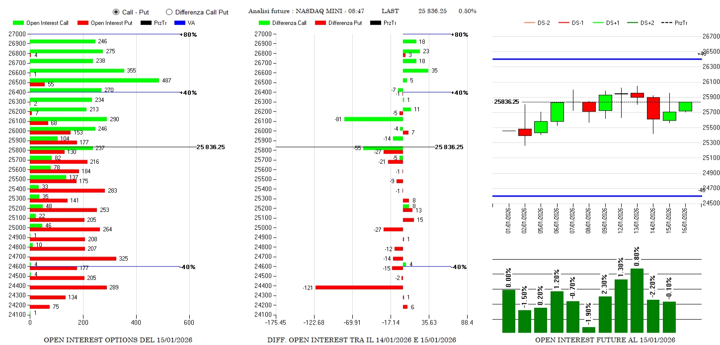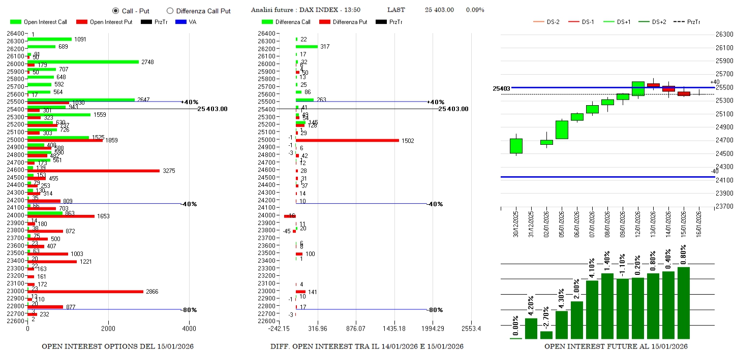Su Va+40 aumentano ancora i future che segnano +0.8% e le put in area 25000. Nonostante i forti rialzi il prezzo è ancora in fase di momentum rialzista