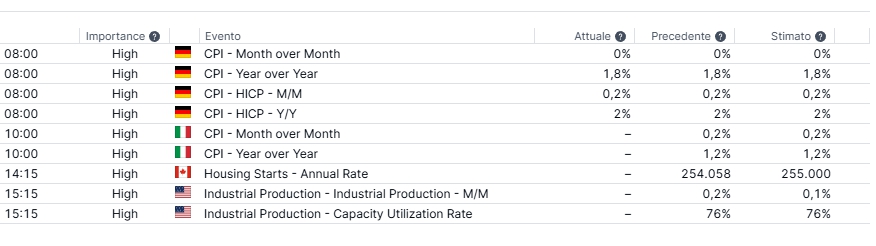 Le principali notizie di oggi vengono come sempre dagli Stati Uniti, in questo caso con i dati sulla produzione industriale.