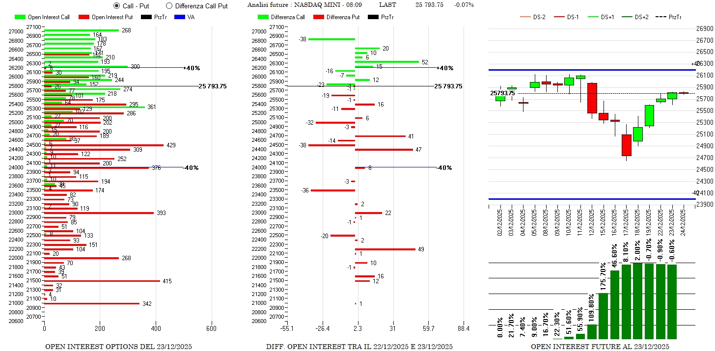 Riposizionamenti di call e put ai lati del prezzo e future in lievissimo alleggerimento.
