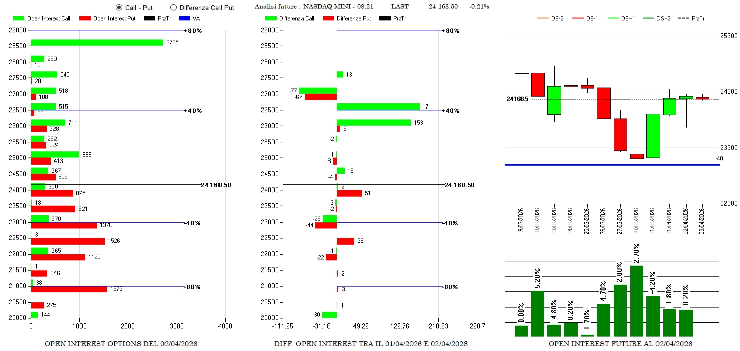 Discreti ingressi di call a strike 26000 e 26500 e riposizionamenti di put a 24000 e 22500. Future praticamente stabili e prezzi che, dopo aver toccato Va-40, è arrivato nel cuore del proprio fair value.
