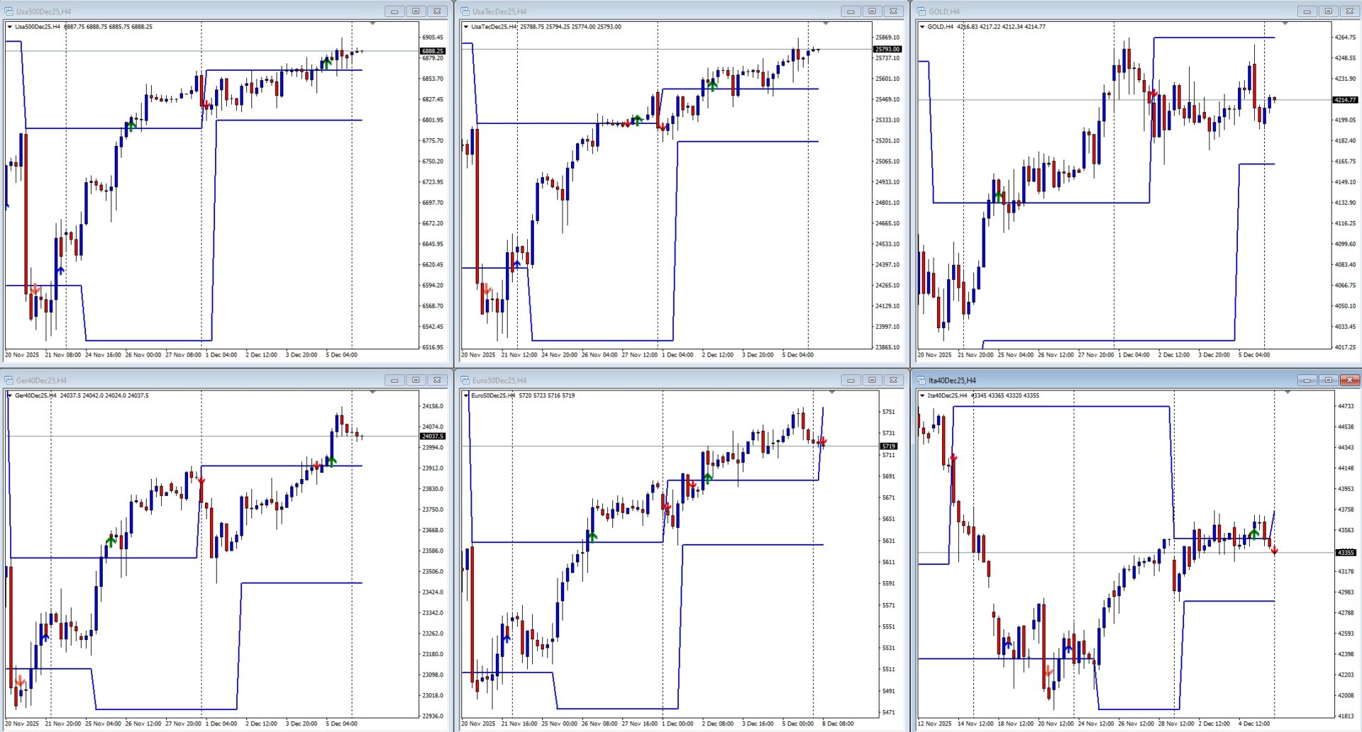 Mc4 di medio periodo rimane ancora con delta positivo su Sp, Nasdaq e Stoxx, mentre su Fib e Stoxx si intravedono i primi segnali di mancanza di forza. Gold in trading range.