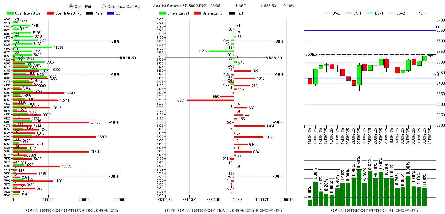 Continua la solita movimentazione che ha contraddistinto gli ultimi mesi e gli ultimi anni, aumentano in modo sistematico le put sotto al prezzo e viene tolto rischio sul lato call con alleggerimenti di posizioni in area 6575. Future poco mossi anche perchè già in fase di rollover.