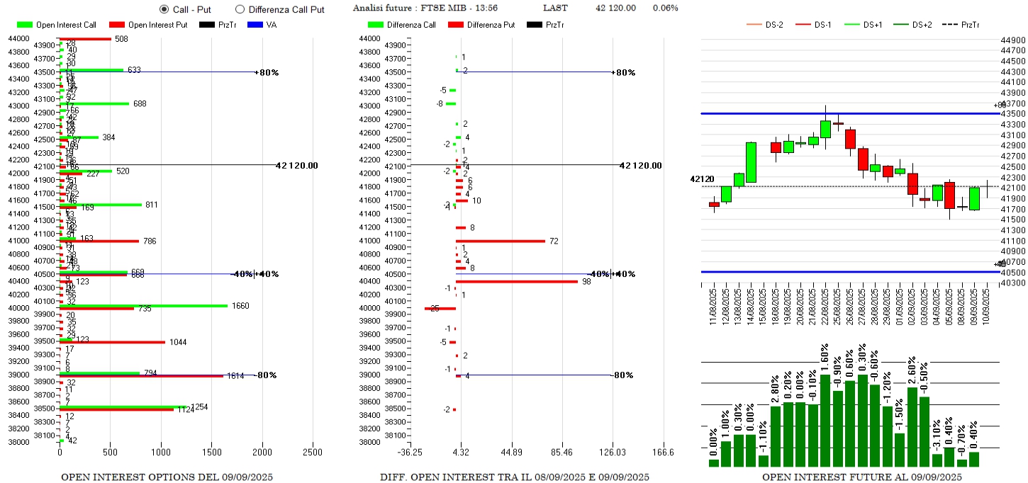 Chiusura di put e call un pò dappertutto e future ai minimi termini. Operatori che tolgono rischio sulla scadenza settembre.