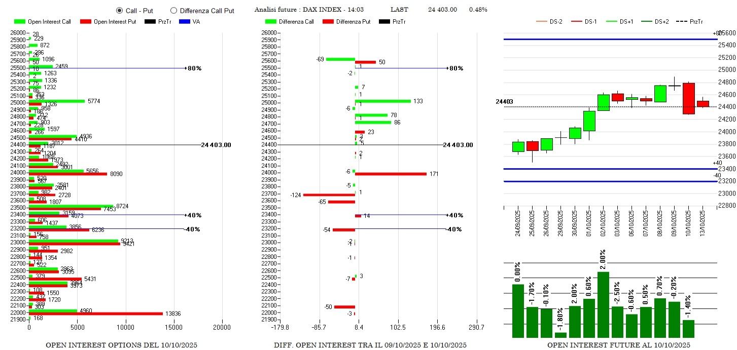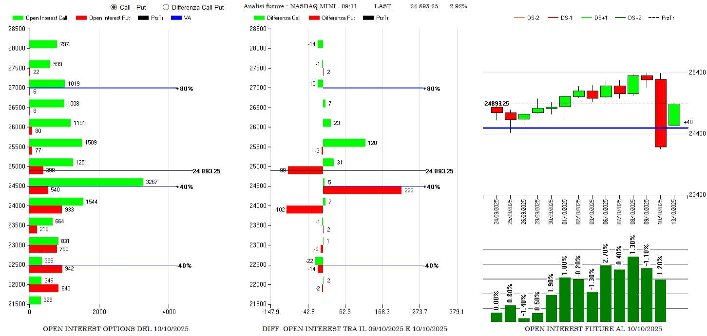 Chiusure di put a 25000 e 24500 e riposizionamenti a 24500. Aumenti di call a 25500 e future in calo. Non sembra esserci alcuna paura da giustificare aumenti di volatilità.