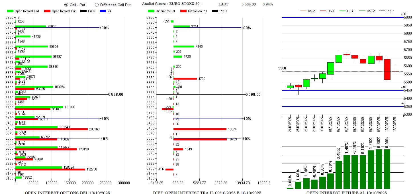 Anche qua aumentano le put sotto al prezzo mentre i future non vengono modificati nelle quantità. Call in aumento da strike 5750