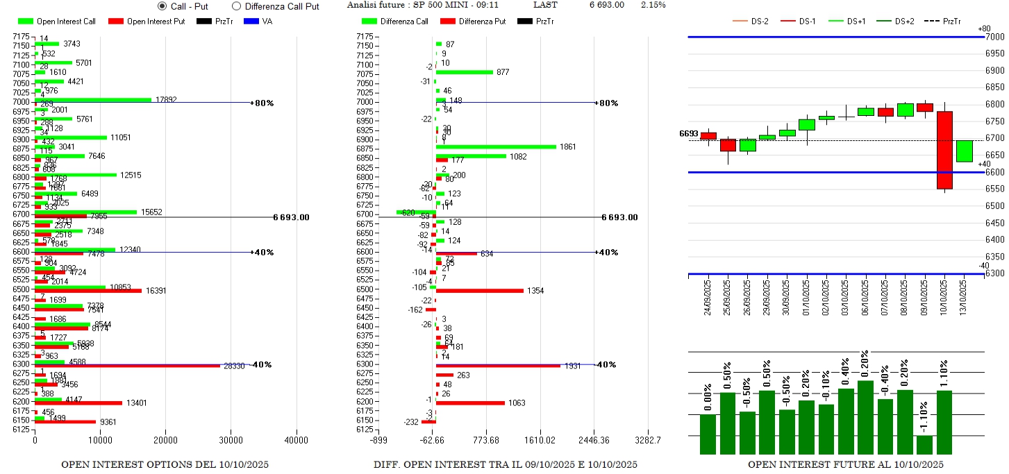 Solo chiusure di call a strike 6700 e riposizionamenti di contratti call in area 6850 e di put da 6600 a 6300. Future in aumento a confermare che sono entrate le prime coperture sul gamma put durante il ribasso. Vedremo se questo provocherà i classici short squeeze.