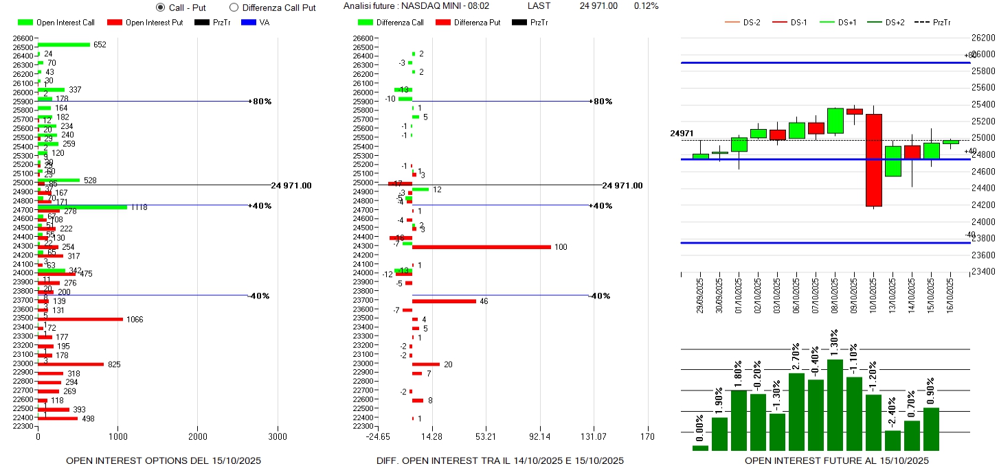 Mercato leggermente più tonico che lavora sopra Va+40 e vede, sulla forza, aumentare ancora i future e riposizionare put a 24300 e 23700. Disinteresse sul lato call.