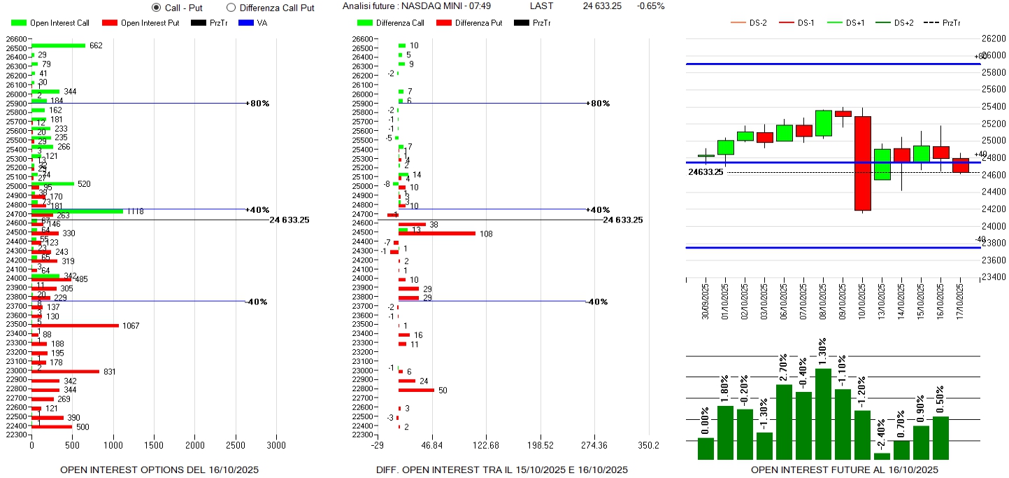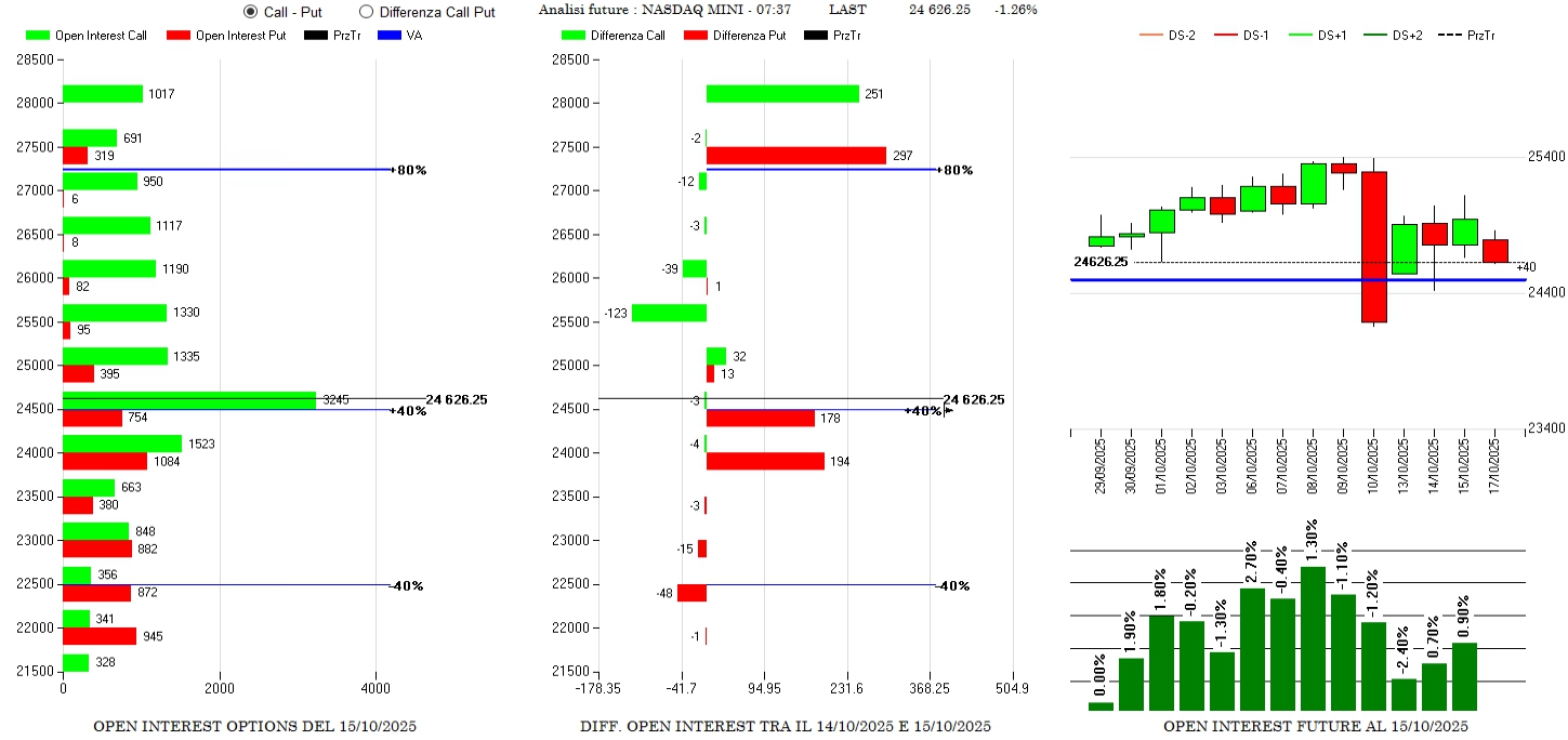 Solo nuovi ingressi di put tra 24600 e 22800. Lato call veramente poco trattato e future in lieve aumento.