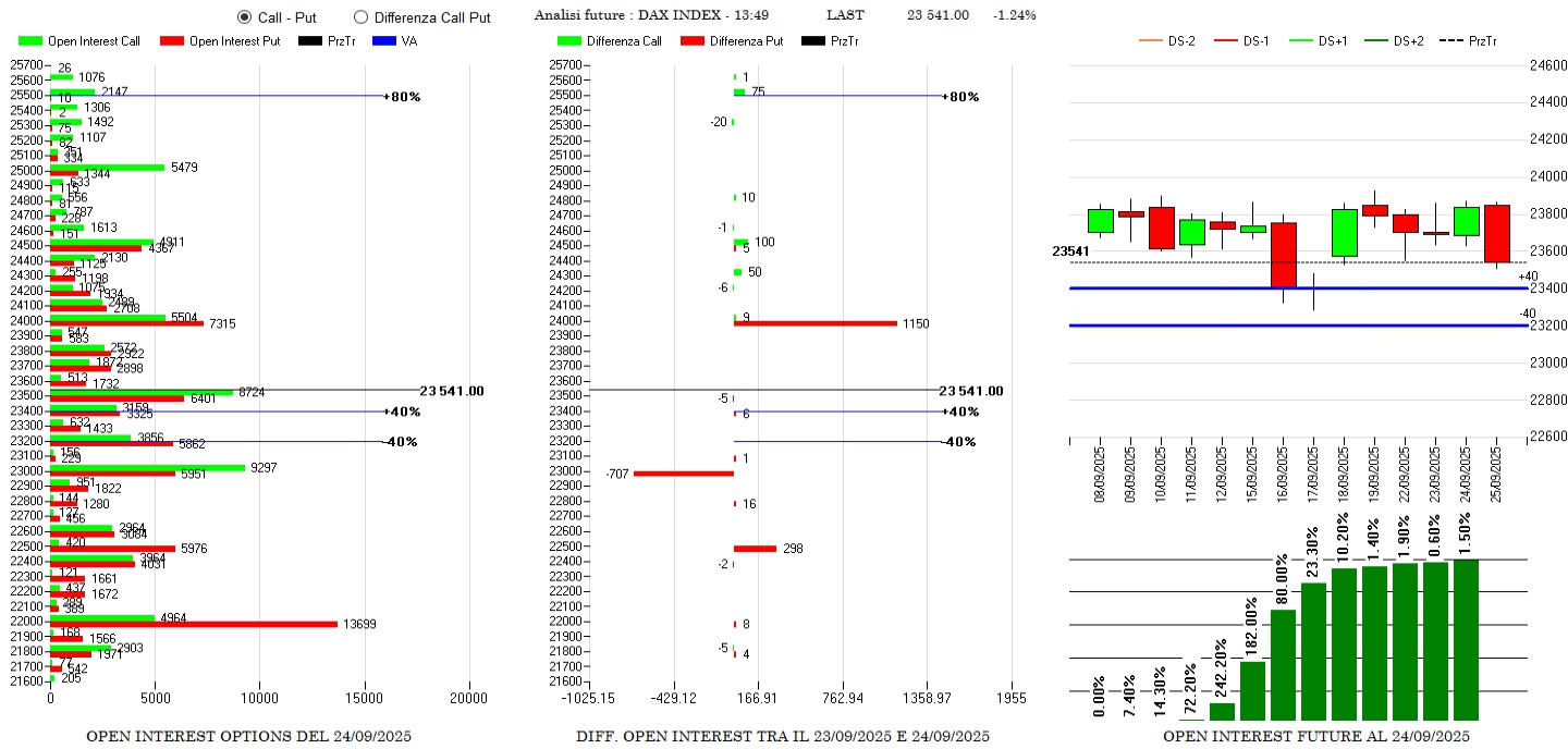Chiusure di put a strike 23000 e ingressi di contratti Itm a 24000 e future in aumento