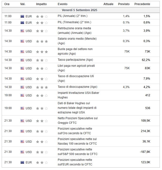 Il 4 settembre 2025, i mercati azionari principali hanno mostrato un andamento positivo trainato dalle aspettative di un taglio dei tassi d’interesse da parte della Federal Reserve. L’S&P 500 ha registrato un aumento di circa lo 0,8%, chiudendo su un massimo storico, spinto da dati sul mercato del lavoro che non hanno modificato le attese di una riduzione dei tassi. Anche il Nasdaq ha performato bene, crescendo intorno all’1%, grazie al buon andamento dei titoli tecnologici. Il Dow Jones è salito di circa lo 0,8%, mentre il Dax ha guadagnato circa lo 0,7%, superando i mercati europei grazie a dati favorevoli e aspettative di politica monetaria accomodante. Infine, lo Stoxx 50 ha chiuso in progresso di circa lo 0,5%, con ottimismo legato alle prospettive di un taglio del costo del denaro da parte della Fed e una stabilizzazione dei rendimenti obbligazionari. I mercati hanno quindi beneficiato di un clima di attesa positivo verso il prossimo report sull’occupazione negli USA.