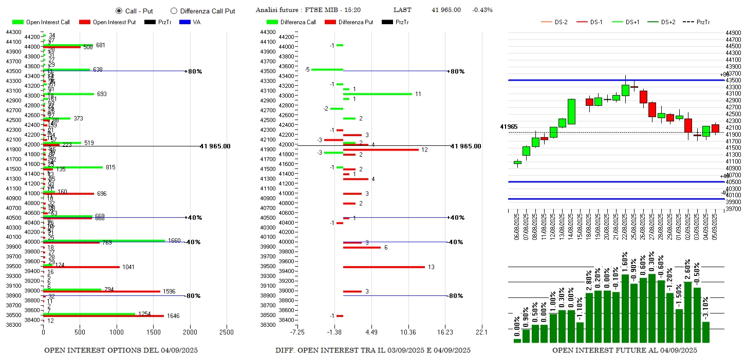 Importante alleggerimento dei future che scendono di oltre il -3%. Di contro sulle opzioni poche movimentazioni con put sotto al prezzo e call sopra.