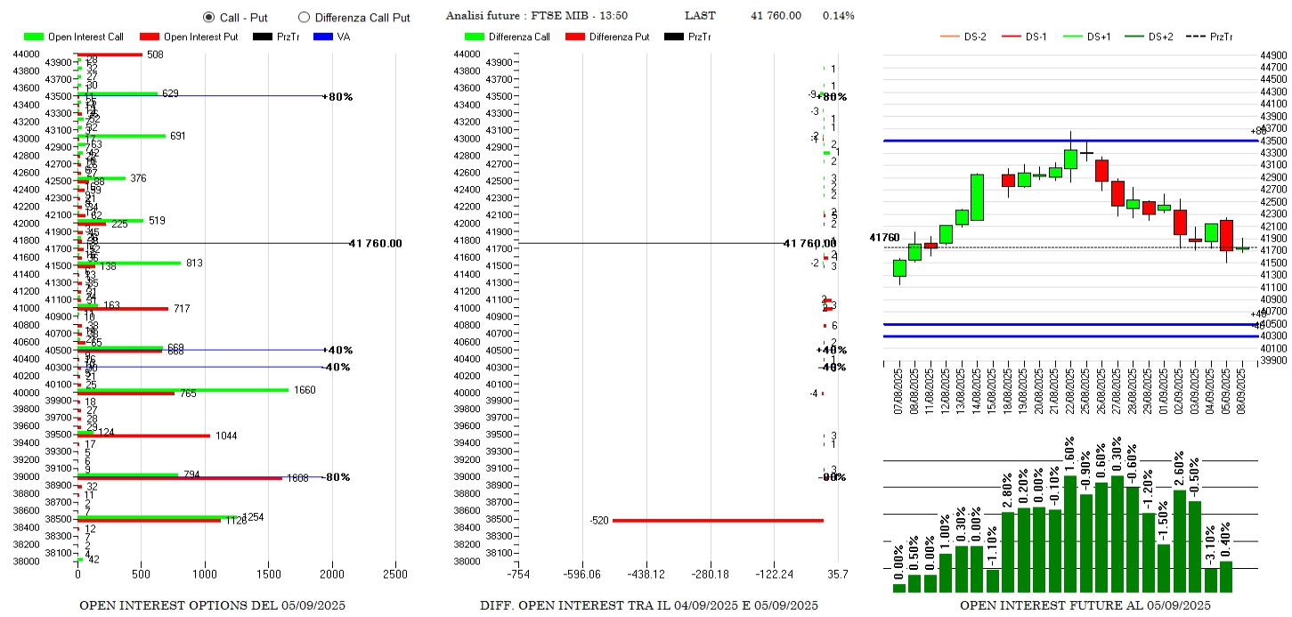 Niente da segnalare se non l’importante uscita di put a strike deep otm 38500. Per il resto nessuna movimentazione di rilievo.