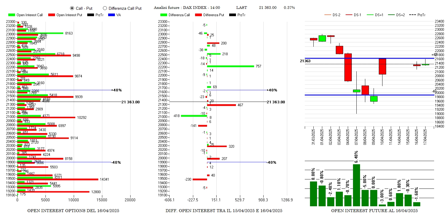 Ben diversa su eurostoxx con ingressi di put sotto al prezzo, aumento dei future e chiusura di call. Questo quadro sembrerebbe dimostrare maggior forza.