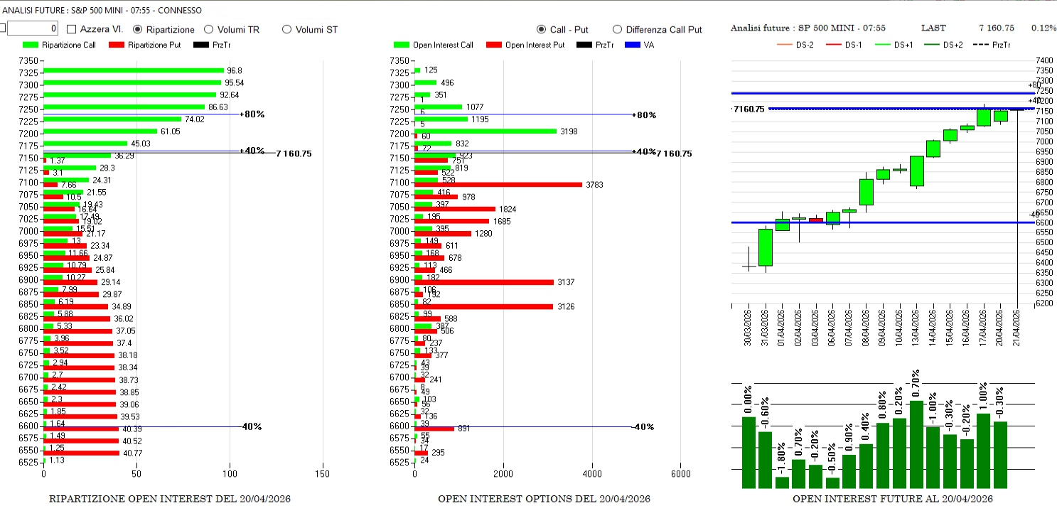 | Gamma negatività (GEX-) | 7100 – 7050 | Sotto questo livello, l’alleggerimento dei future potrebbe accelerare in vendite. |