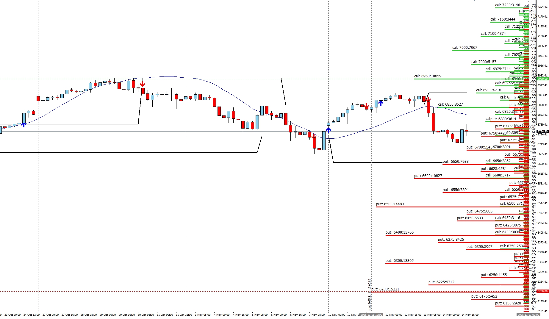 Supporti fondamentali: le aree 6700 e 6600 fino ad arrivare al poderoso strike posizionato a 6500. Da ricordare che, in caso di rottura ribassista di questi livelli, sono possibili forti squeeze di prezzo e aumenti significativi di volatilità.