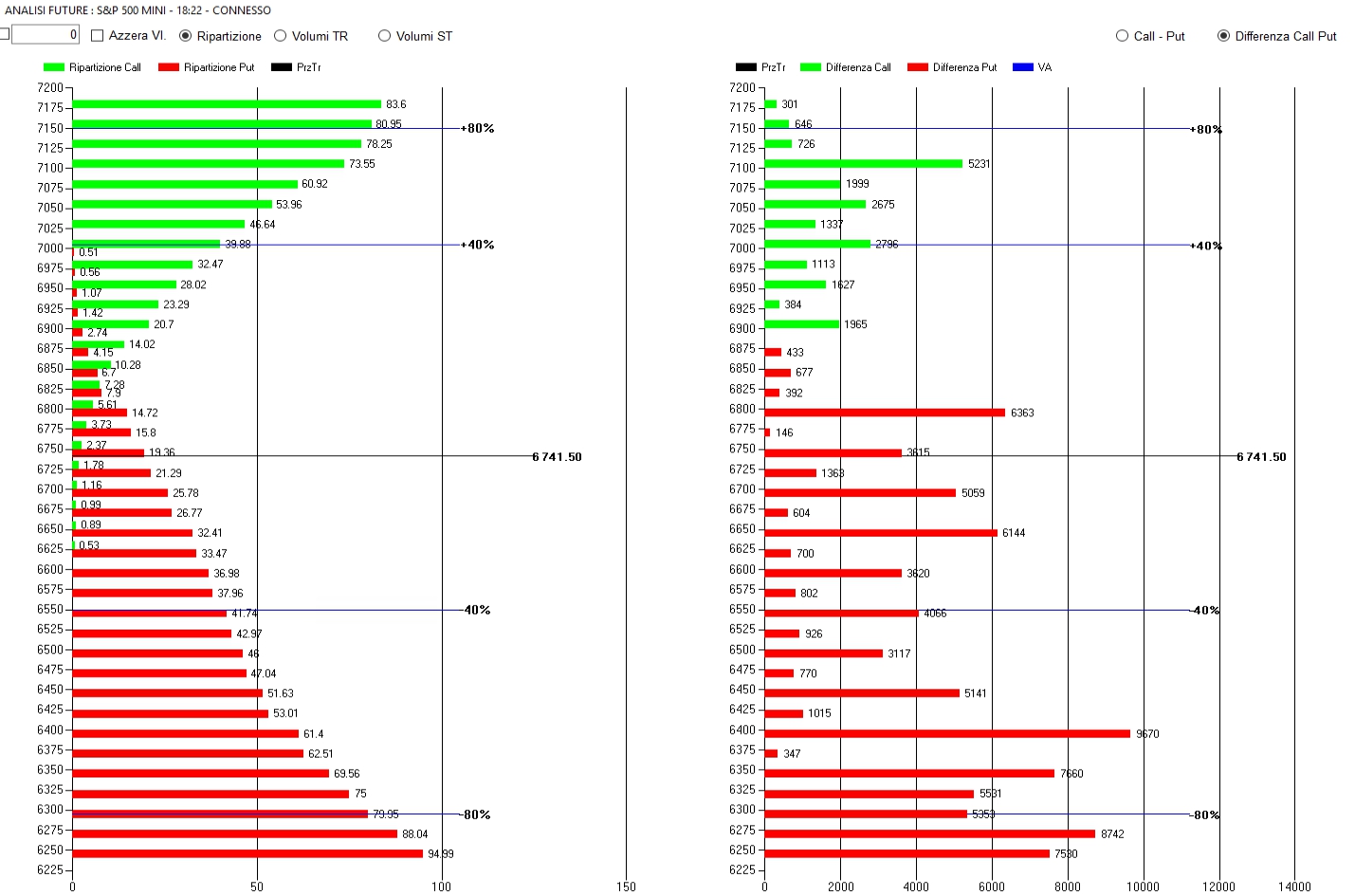 Il supporto critico si trova a strike 6.700 e successivamente avremmo area 6650 e poi, come ultima area di eccesso, strike 6400 dove insistono oltre novemila contratti Put.