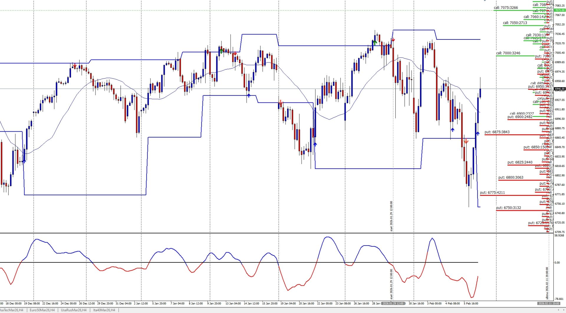 Al ribasso troviamo dapprima area 6920, successivamente 6863 ed infine 6771.