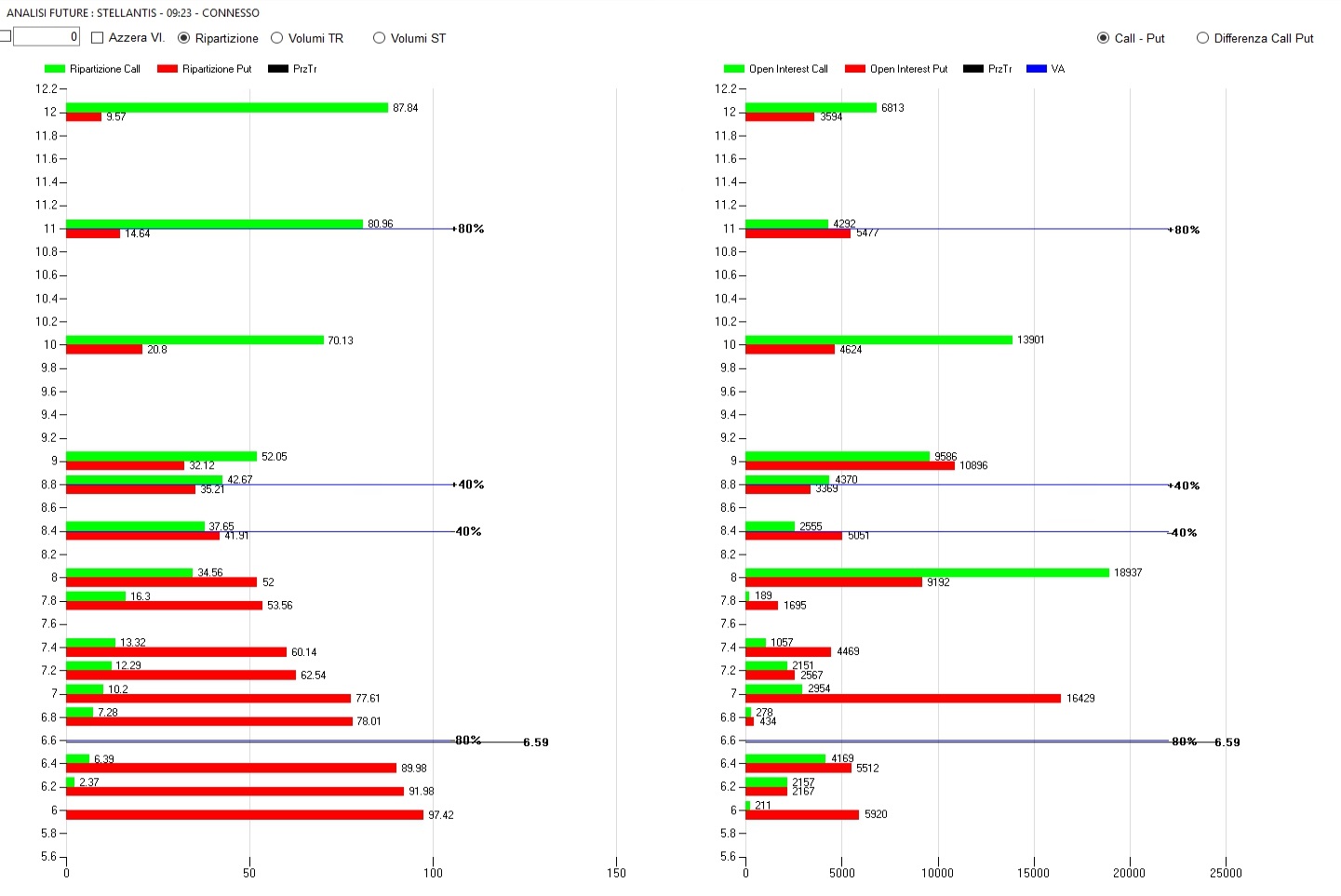 A sinistra il grafico della Ripartizione, al centro il grafico dei Totali Open Interest.