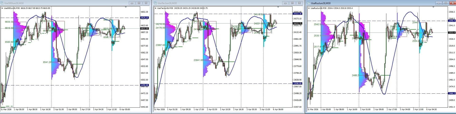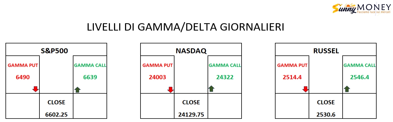 L’apertura odierna si caratterizza per una profonda asimmetria operativa, con le piazze europee che rimangono silenti per le festività, lasciando l’intera scena ai future americani. Sui grafici dell’S&P500, del Nasdaq e del Russell si osserva un’impostazione tecnica decisamente solida, con i prezzi che scambiano stabilmente sopra le chiusure della vigilia. Un elemento distintivo di questa sessione è la posizione della linea di regressione lineare, che si colloca al di sotto delle quotazioni attuali mantenendo una pendenza positiva costante. Questa configurazione suggerisce che il trend è, per ora, sostenuto da una discreta forza e non solo da fiammate emotive, agendo come una base dinamica che accompagna l’ascesa dei listini.