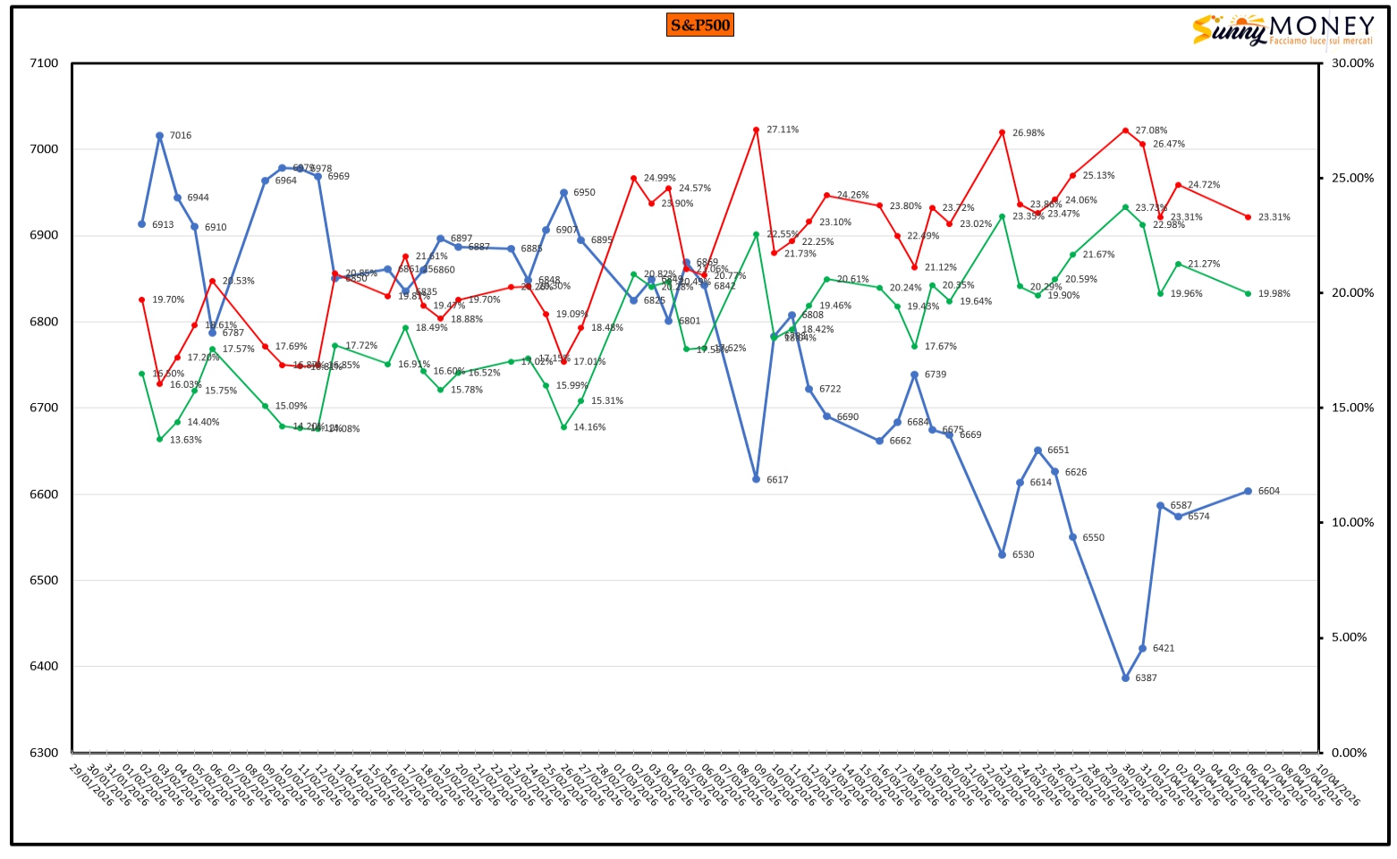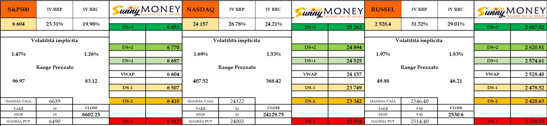 Panoramica di mercato che evidenzia, con i livelli delle deviazioni standard, una sensibile asimmetria positiva dei prezzi.